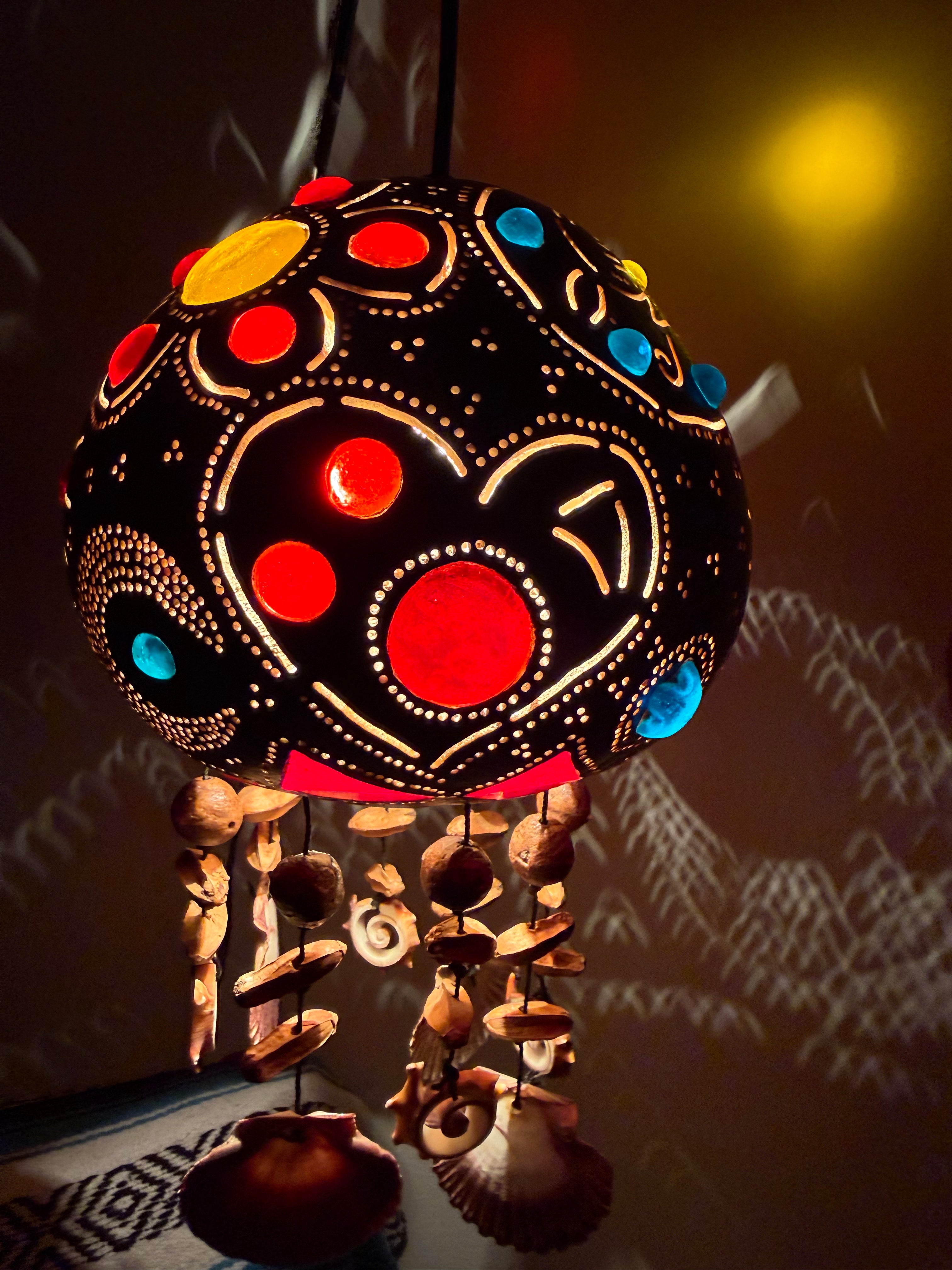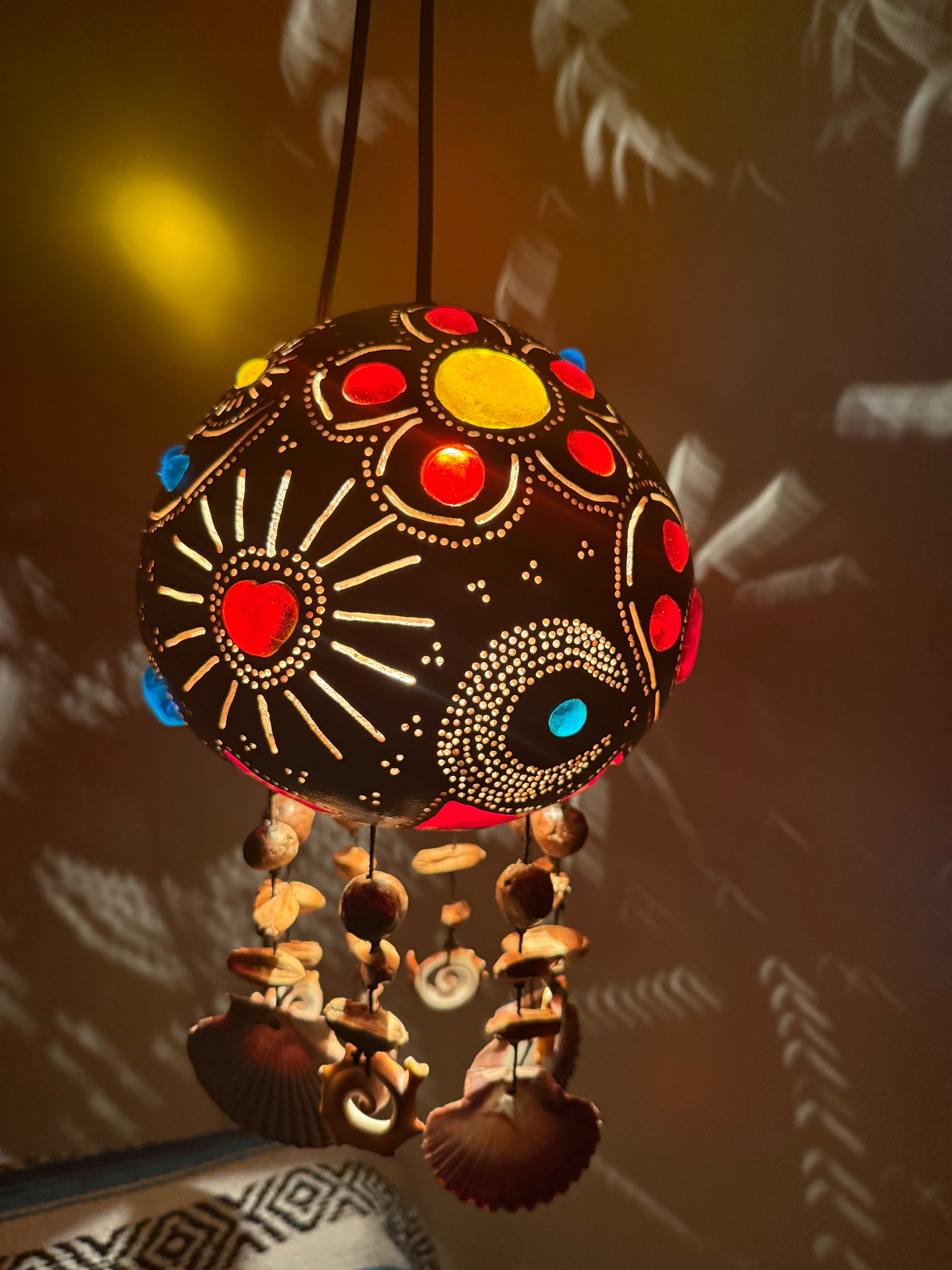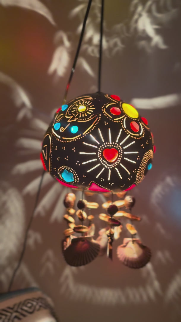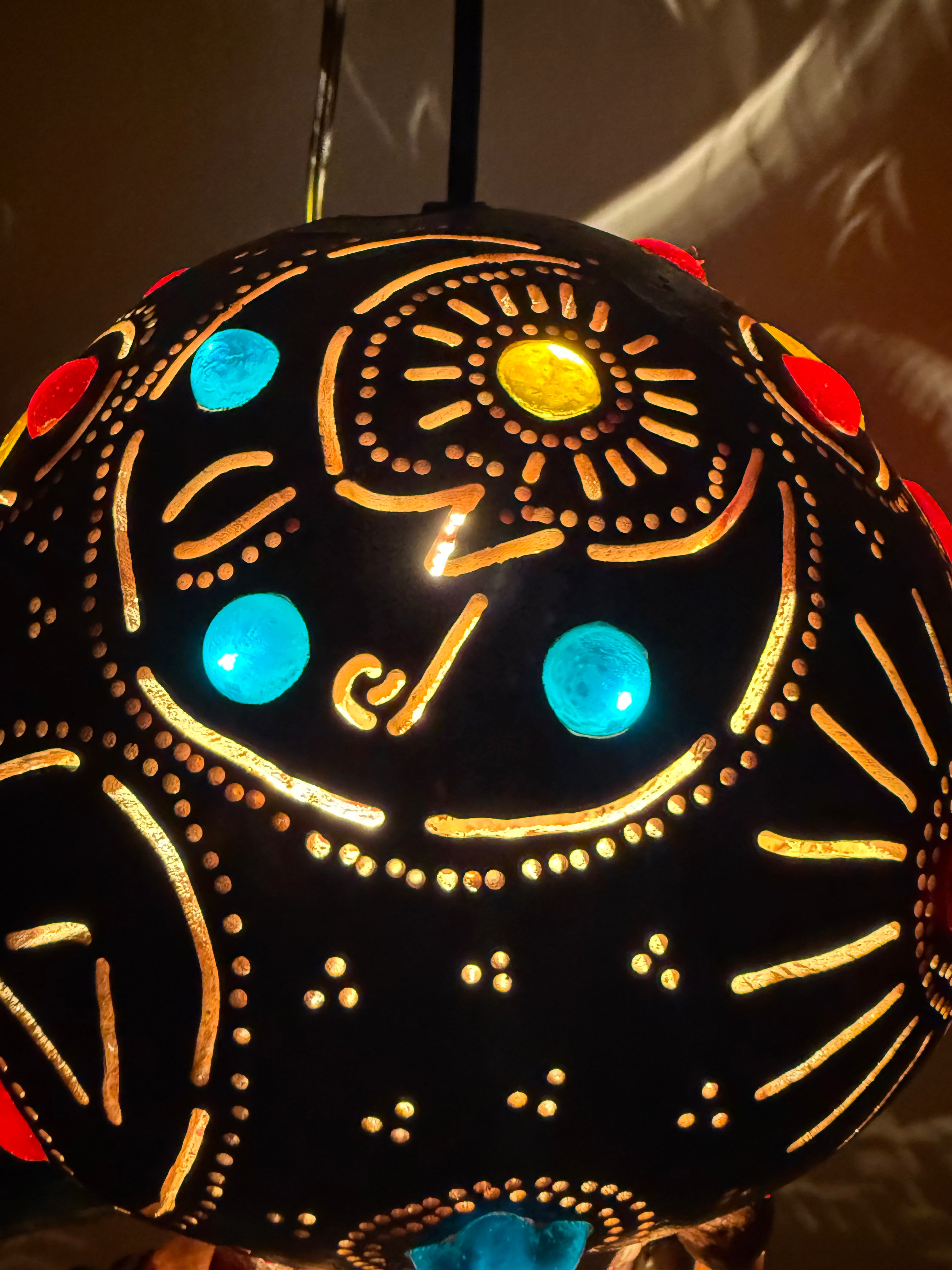 8 vidrios de vitral rojo con más de 40 incrustaciones de vidrio color rojo, turquesa, amarillo y azul.