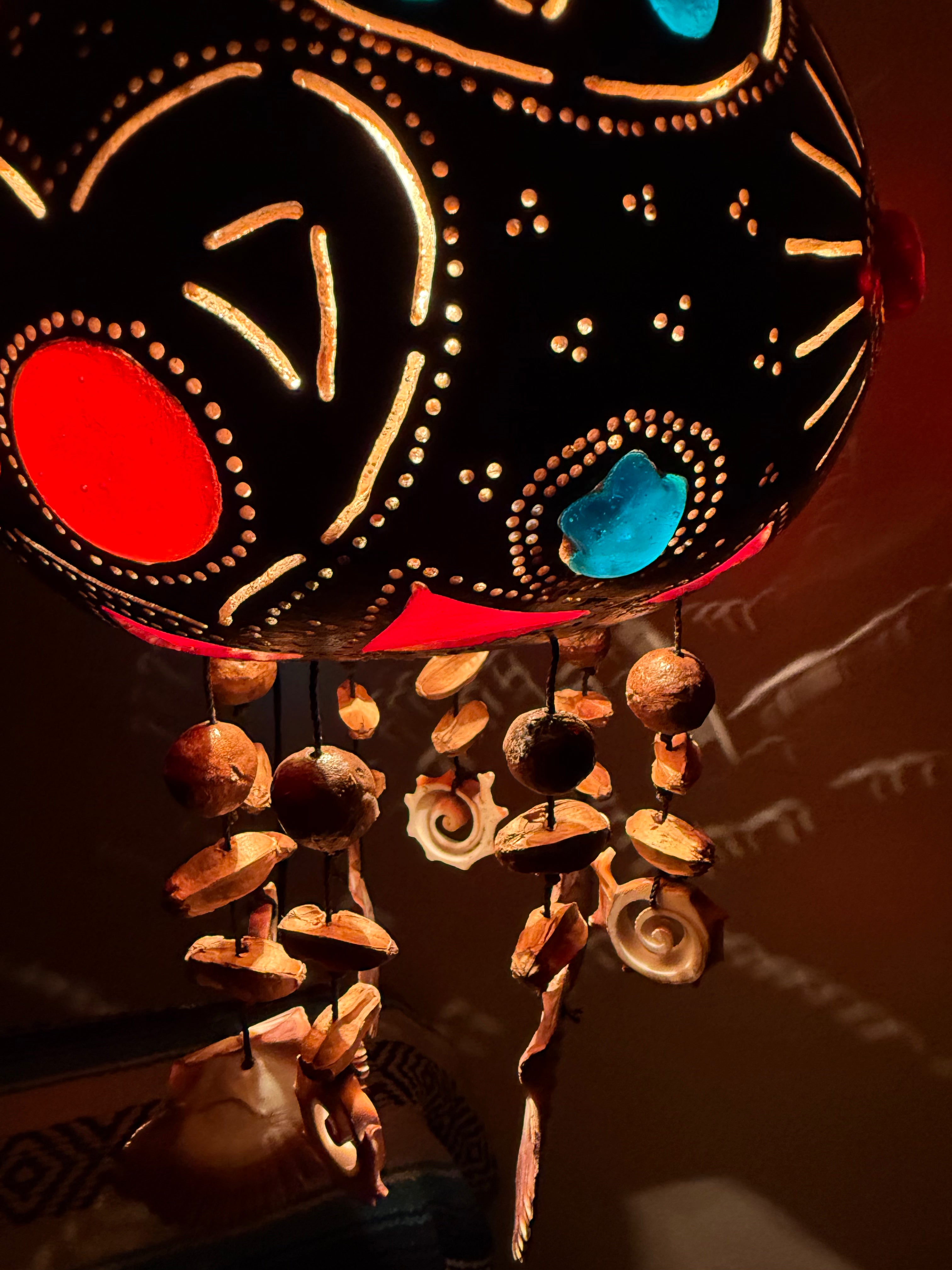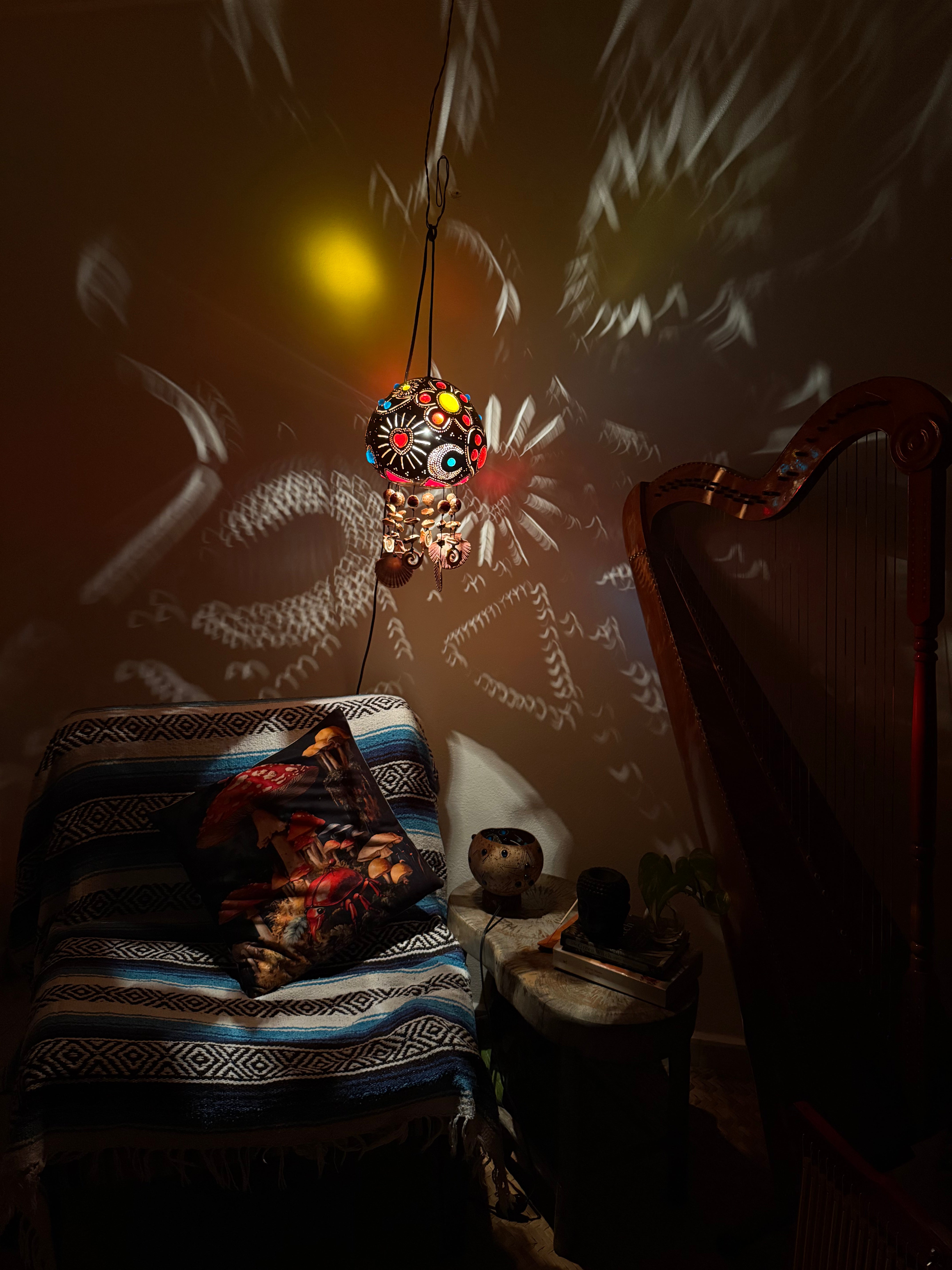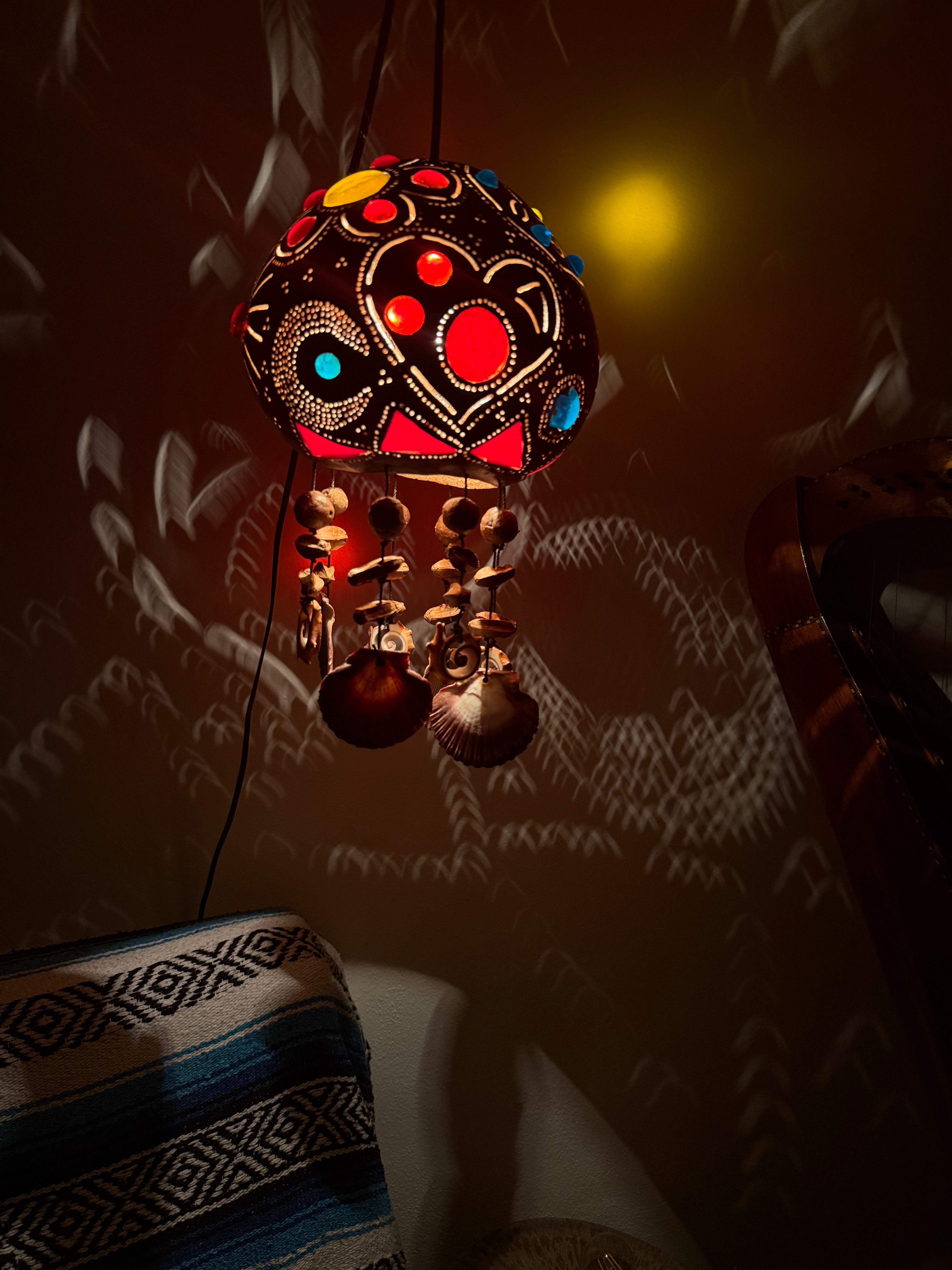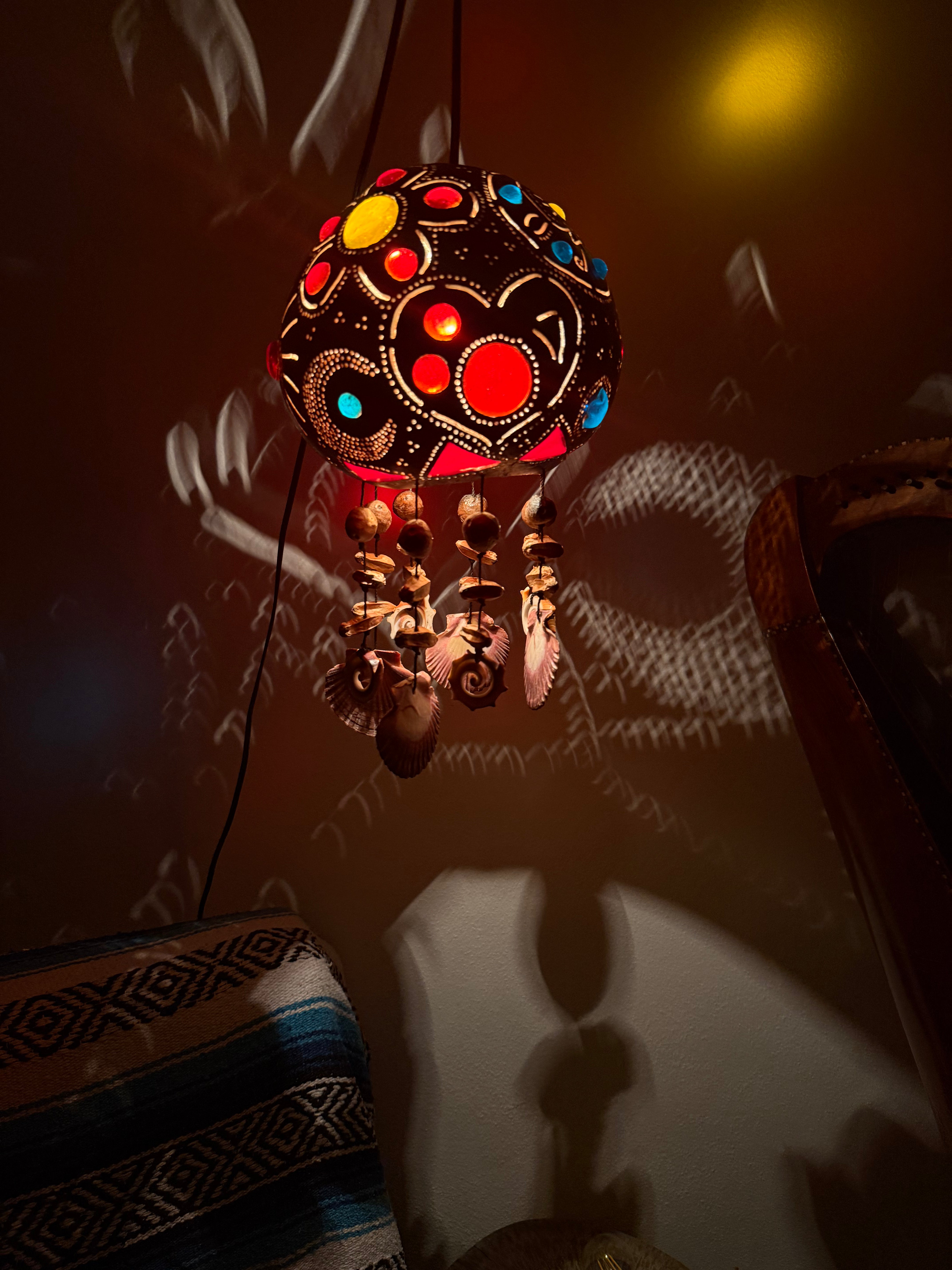 8 vidrios de vitral rojo con más de 40 incrustaciones de vidrio color rojo, turquesa, amarillo y azul.